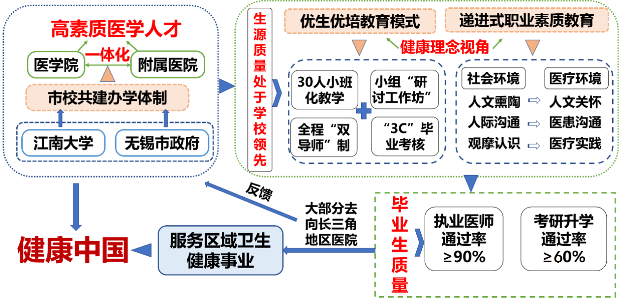 市校共建制度是伟德victor1946医学学科教育的特色与优势。秉承“市校共建、优势互补、资源共享、发展双赢”的原则,组建市校共建伟德victor1946无锡伟德国际victor1946专班和伟德victor1946医学发展领导小组,建立市校、委院两级协调运行机制,为医学教育改革提供了优越的教学条件和有力的体制保障。无锡市政府提供专项资金超10亿元用于伟德国际victor1946建设,政策支持医科高水平人才引进、学科发展和教学改革。伟德victor1946对伟德国际victor1946进行特区支持,整合优势资源引领人才培养、学科建设、科学研究、社会服务等各方面工作。在这一模式下,人才培养机制活力强,教学条件优越,办学资源配置充裕,为医学教育奠定了坚实的内涵基础。