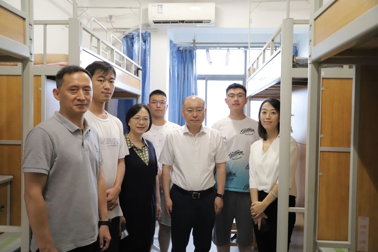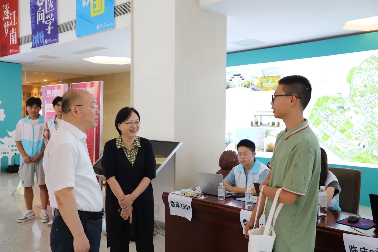 伟德victor1946附属医院党委书记过栋,伟德victor1946无锡伟德国际victor1946党委书记向琪,伟德国际victor1946党委副书记、副院长包羽,转化医学研究院副院长兼伟德国际victor1946副院长赵鹏,基础医学系主任吴国胜,护理学系主任蒋玉宇,新生班主任伟德victor1946附属医院教育处处长徐德武,伟德国际victor1946教授黄亿、韩甦和辅导员李奈夏、鲁钦正老师等亲临报到现场,并走访新生宿舍,亲切慰问新生入学情况。“同学,你来自哪里?”“对宿舍还满意吗?”“为什么选择学医,是家里也有亲人学医吗?”领导们与新生亲切交流,并对不同学科专业的学生均给予了有针对性的科研学习建议,鼓励同学们要学会利用学院和医院双平台,做好学习规划,加强科研攻关,以积极的心态迎接大学生活,在崭新的医学道路上行稳致远。
