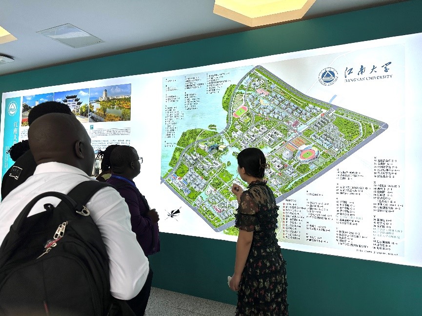 9月20日上午,由商务部主办、江苏省血吸虫病防治研究所承办的“一带一路”乌干达疫情管理和控制研修班一行18人在省血防研究所教学科科长王玠的陪同下来到伟德victor1946无锡伟德国际victor1946进行学习调研。无锡伟德国际victor1946副院长陈雪、伟德victor1946国际学生招生工作办公室主任杨春龄陪同参观交流。