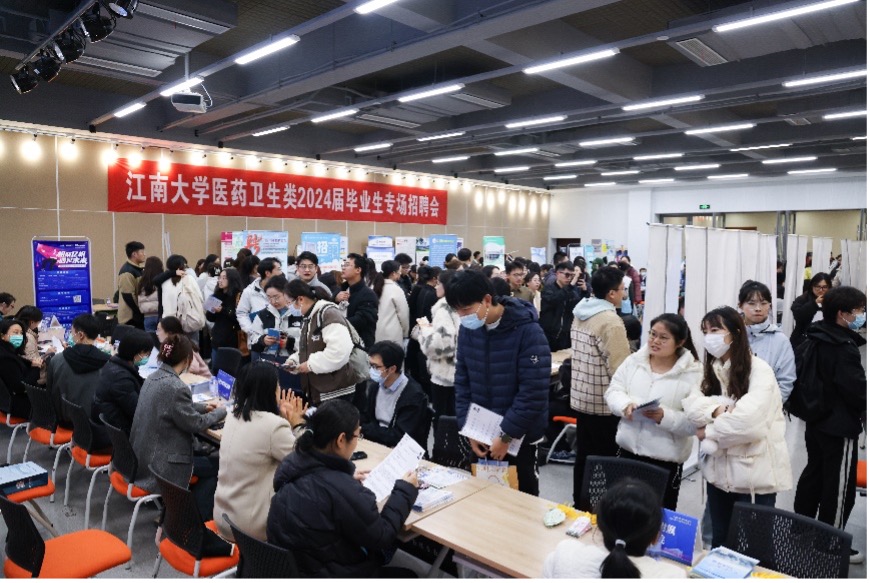 本次招聘会由伟德victor1946无锡伟德国际victor1946与生命科学与健康工程学院联合举办,汇聚伟德victor1946附属医院、伟德victor1946附属中心医院、伟德victor1946附属妇产医院、伟德victor1946附属精神卫生中心、伟德victor1946儿童医院、伟德victor1946附属无锡五院、伟德victor1946教学医院无锡市第九人民医院、无锡市人民医院、无锡太湖学院、无锡市南京大学锡山应用生物技术研究所、药明康德、阿斯利康、华瑞制药、扬子江药业、长风药业等无锡、江阴本地和江苏省内医疗卫生机构、科研院所、医药龙头领军企业等用人单位近百家,提供优质就业岗位1200余个,招聘岗位涵盖临床医学、基础医学、护理学、公共卫生与预防医学、药学、制药工程等专业,适应本硕博应届毕业生求职需求,吸引400余名学生到场参加。