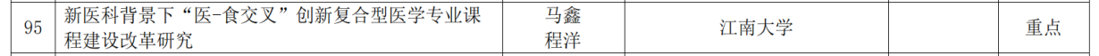 近日,江苏省高等教育学会公布了2023年江苏省高等教育教改研究课题立项名单,经学校推荐、专家遴选、江苏省高等教育学会公示和审定,我院马鑫、程洋领衔申报的《新医科背景下“医-食交叉”创新复合型医学专业课程建设改革研究》喜获重点课题立项,实现我院在高等教育教改方面新突破。