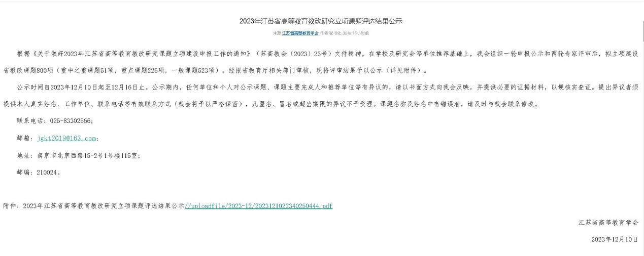 江苏省高等教育改革立项名单截图