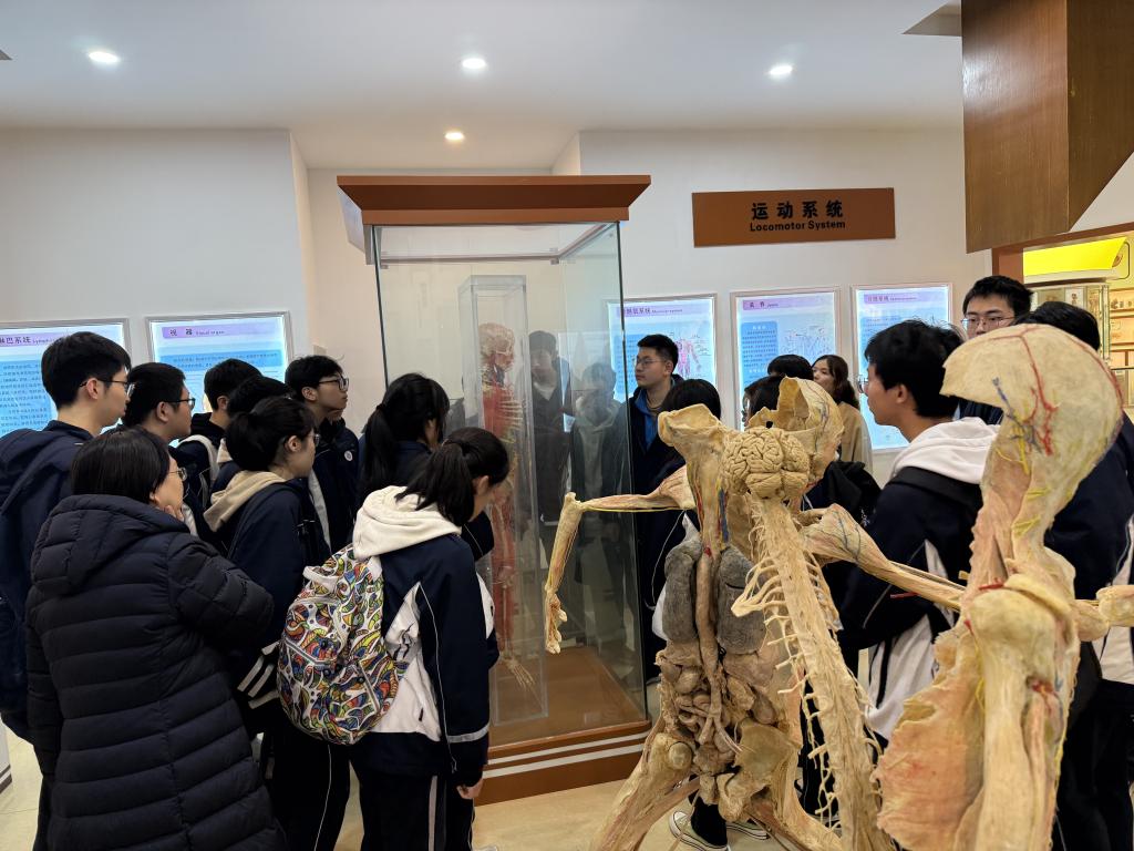 为了让同学们更直观地了解医学教育,此次活动特别设置了参观人体科学馆的环节。进入人体科学馆,同学们仿佛踏入了一个充满奇妙的医学世界。馆内陈列着丰富多样的人体标本,从骨骼结构到精密的神经血管系统,同学们无不被人体那精密而复杂的构造所深深吸引。讲解员细致地为同学们讲述着每个标本背后的医学知识,从正常的生理结构到病理状态下的变化,让同学们更为直观地感受到医学的科学性和艺术性。这不仅是一次简单的参观,更是对医学深层认知的探索之旅。
