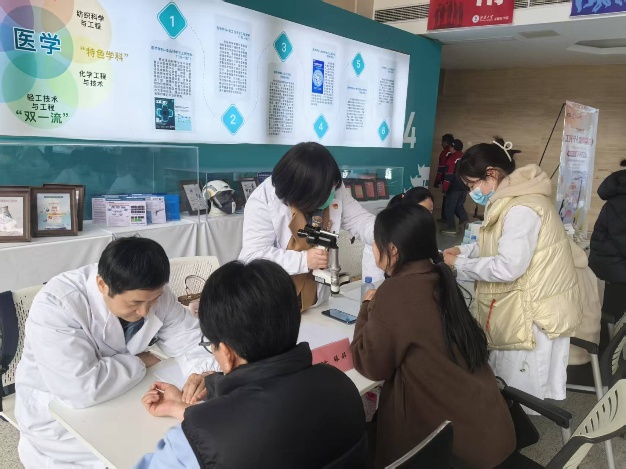 下午,院工会邀请了伟德victor1946附属医院眼科主任王继红、妇产科主任王元、全科主任陈炜领衔的专家团队,在医学大楼一楼开展公益义诊。通过眼底检查、中医把脉、健康咨询等方式,为教职工及学生们提供个性化诊疗建议,并针对常见疾病预防、饮食调理、季节养生等答疑解惑。