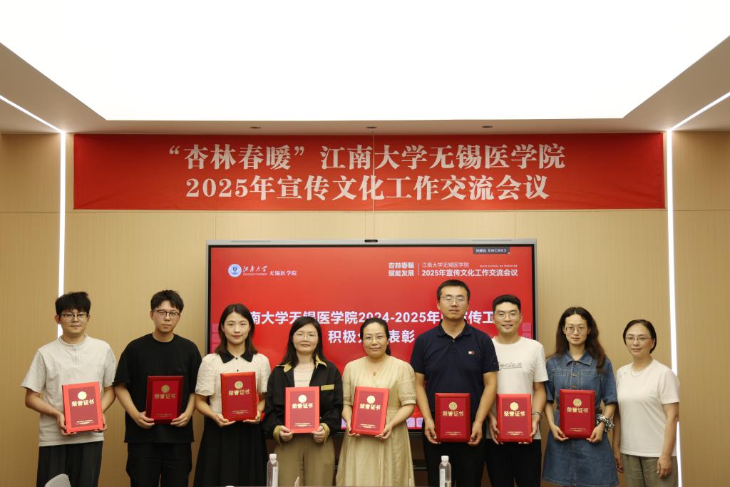 会上,对2024-2025年度学院宣传工作积极分子、医宣融合工作先进个人进行了表彰。附属医院丁一、附属中心医院李霞荣荣获医宣融合工作先进个人,鲁钦正等11名教师及石一等8名学生荣获宣传工作积极分子称号。