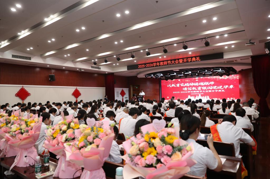 下午,伟德victor1946附属中心医院举办2025-2026学年教师节大会暨开学典礼。院党委书记向琪、执行院长孙宁受邀出席本次大会。向琪向在场的老师们表达了诚挚的敬意和感激。她总结了近年来学校医学专业取得的长足发展和进步,并指出,这离不开医院在人才培养、学科内涵建设方面做出的巨大贡献,为医学学子拓宽成长成才的平台与渠道、提供了更宽广的视野。向琪强调,学校高度重视与医院的全方位合作,在“十五五”规划到来之际,更要促进院校高度融合、医教协调发展、合作开创新的篇章,为健康中国建设添砖加瓦。随后执行院长孙宁为赵晖、倪景斌、许颖三位颁发伟德victor1946优秀带教老师荣誉证书。