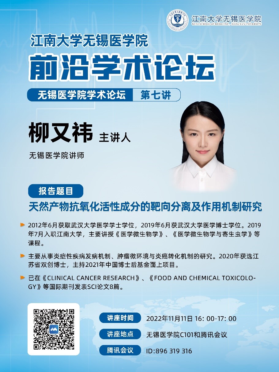 11月11日伟德victor1946无锡伟德国际victor1946前沿学术论坛 第七讲——柳又祎博士 无锡伟德国际victor1946讲师