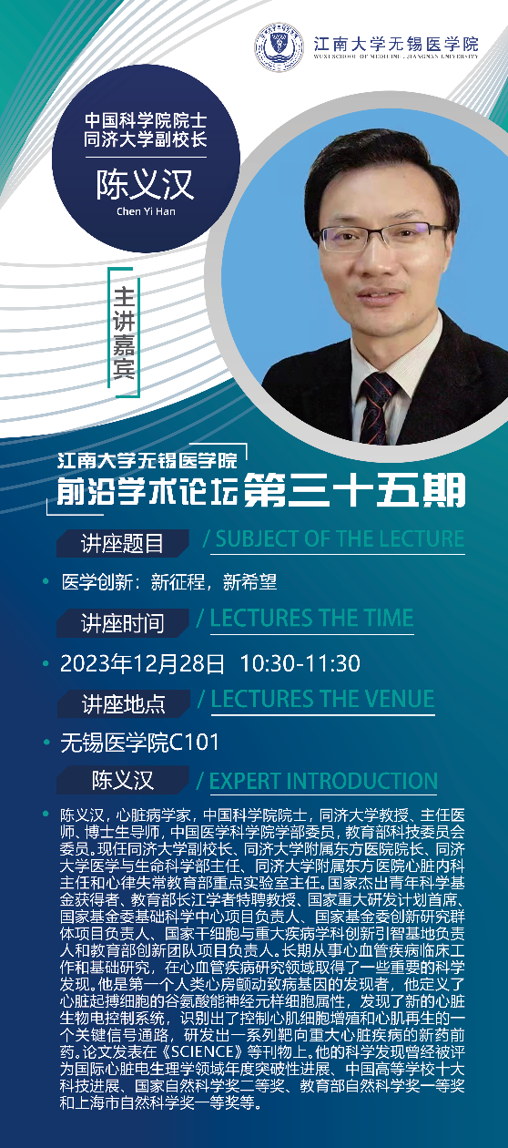 12月28日伟德victor1946无锡伟德国际victor1946前沿学术论坛第三十五讲 陈义汉院士——医学创新:新征程,新希望