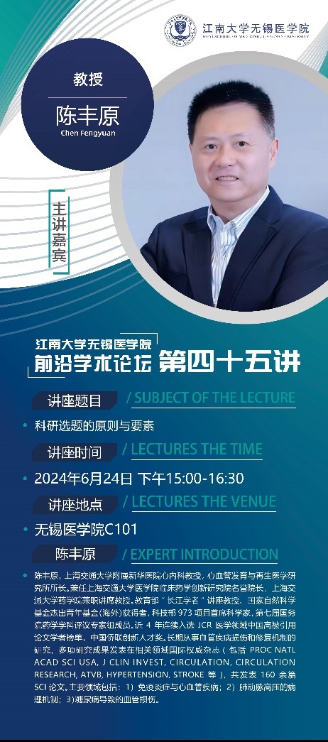 6月24日 刘 强:靶向肿瘤干细胞的机制与策略 陈丰原:科研选题的原则与要素
