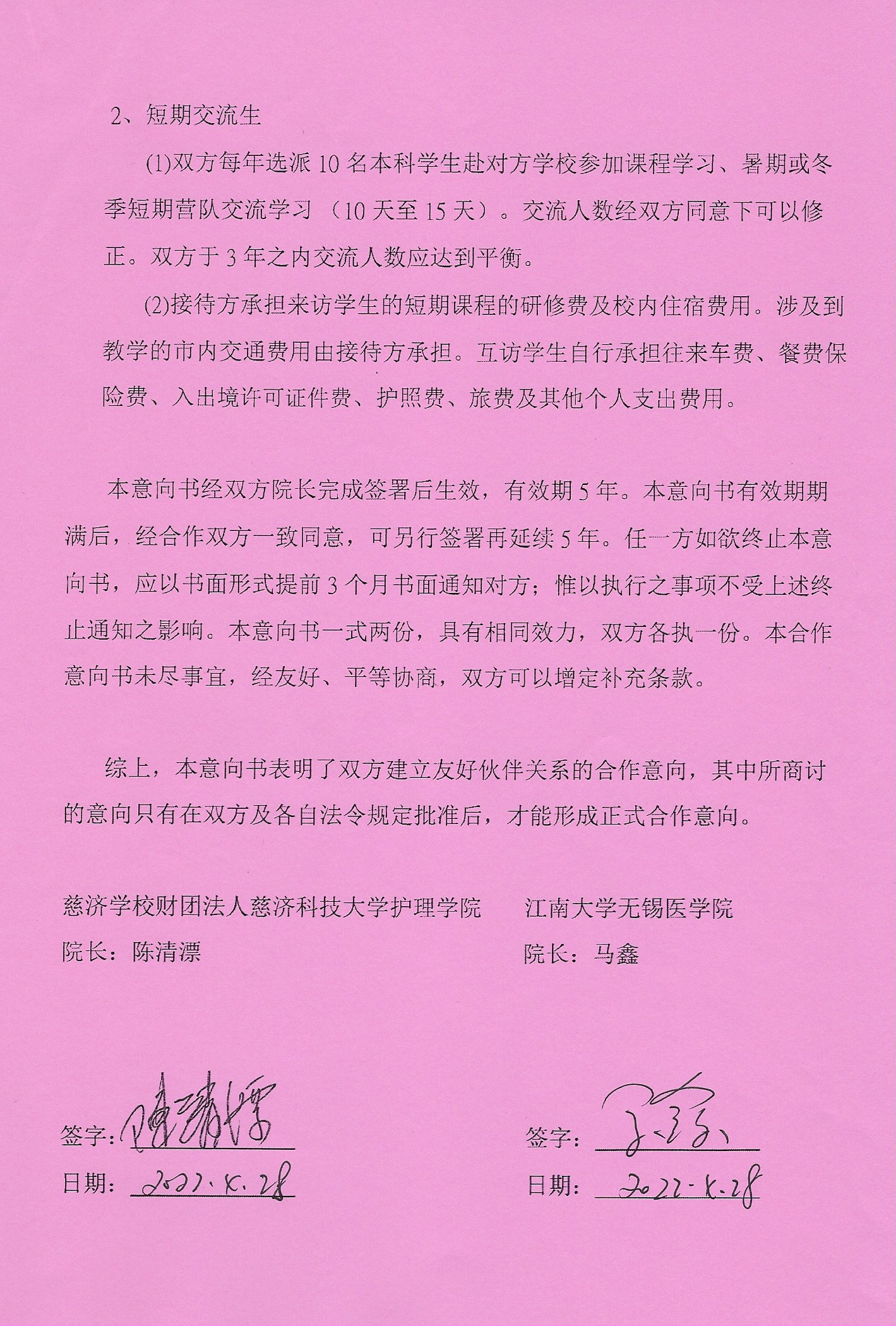 近日,伟德victor1946无锡伟德国际victor1946与台湾慈济科技大学通过线上方式进行了续签协议议程。伟德国际victor1946院院长马鑫、慈济科技大学护理学院院长陈清漂代表双方签署续签。本次续签将继续秉承平等互惠、相互理解的精神,通过友好合作伙伴关系的建立与维系促进两校院间的师生互动,实现文化及专业交流。