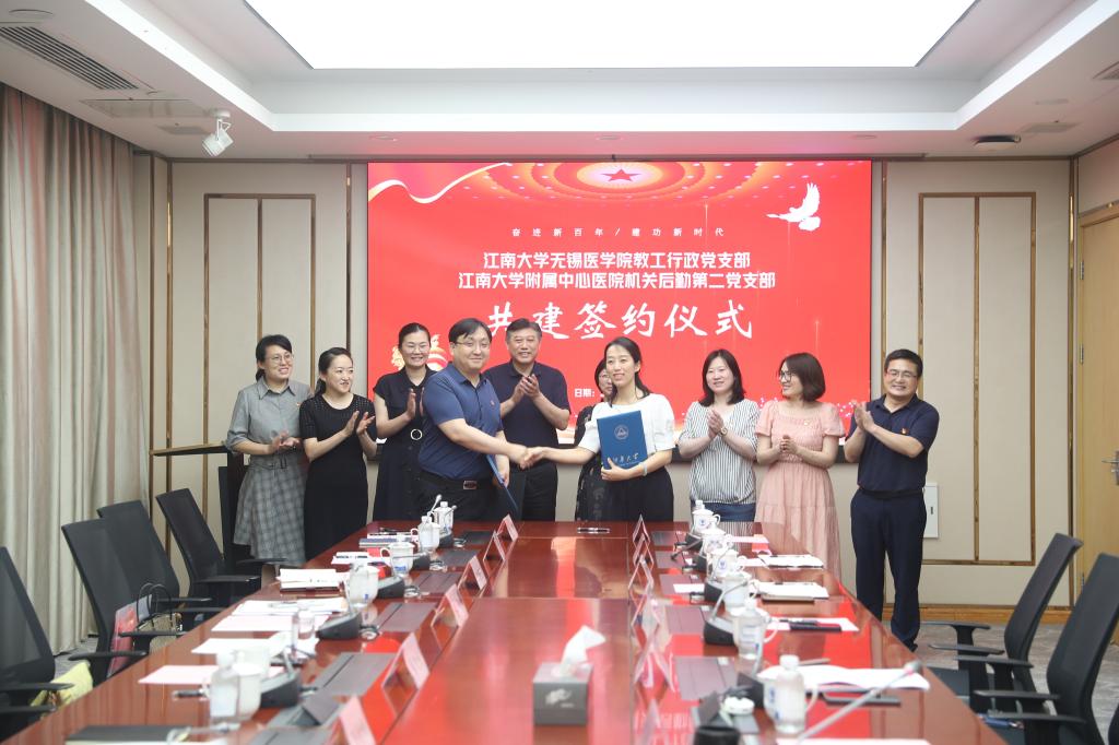 为深入学习贯彻习近平新时代中国特色社会主义思想,充分发挥党建引领作用和党建共建促进作用,努力构建“资源共享、优势互补、注重实效”的党建工作新格局,2023年7月7日,无锡市第二人民医院(伟德victor1946附属中心医院)机关后勤第二党支部与伟德victor1946无锡伟德国际victor1946教工行政党支部进行共建签约仪式。市二院党委书记鲁晓杰、伟德国际victor1946党委书记向琪以及双方党员代表出席签约仪式,活动由伟德国际victor1946党委副书记、副院长、教工行政党支部书记包羽同志主持。