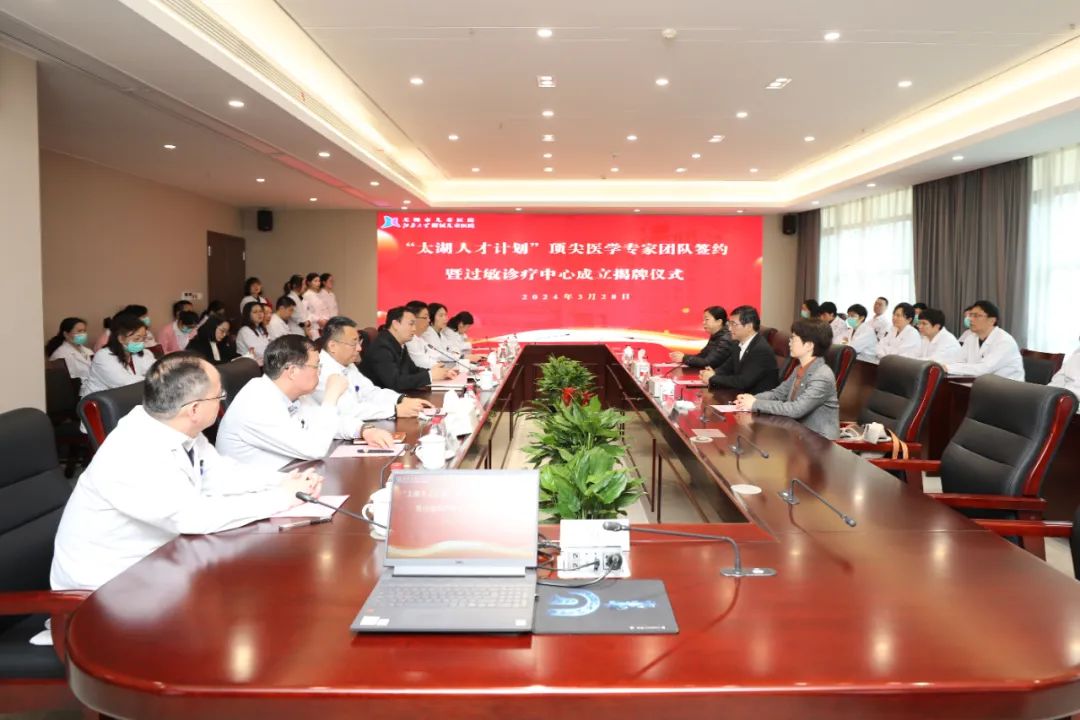 3月28日上午,无锡市儿童医院(伟德victor1946附属儿童医院)在第三会议室举办“太湖人才计划”顶尖医学专家团队签约暨过敏诊疗中心成立揭牌仪式。