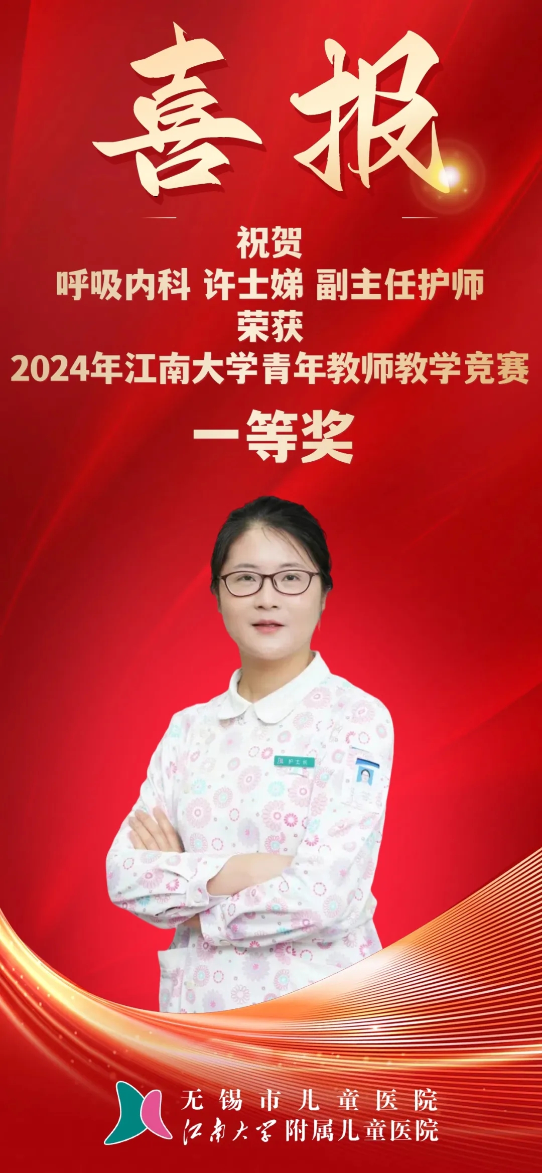 本次竞赛获奖教师所取得的佳绩,充分展现了无锡市儿童医院青年教师教学水平和教师风采,无锡市儿童医院也是附属医院中唯一获一等奖殊荣的单位。